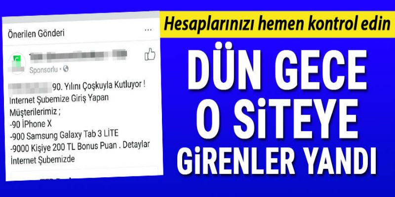 Milyonlarca banka müşterisi, dolandırıcıların sosyal medya sitelerinde kurdukları tuzağa düşüyor. Dün gece Facebook’a girenler ilginç bir durum ile karşılaştı. Dolandırıcılar, özel bir bankaya ait sayfa görüntüsü oluşturdu. Tüketicileri, çeşitli vaatler sunarak, oluşturdukları linke yönlendiren dolandırıcılar böylece siteye giriş yapan kişilerin hesap bilgilerini ele geçirdi.